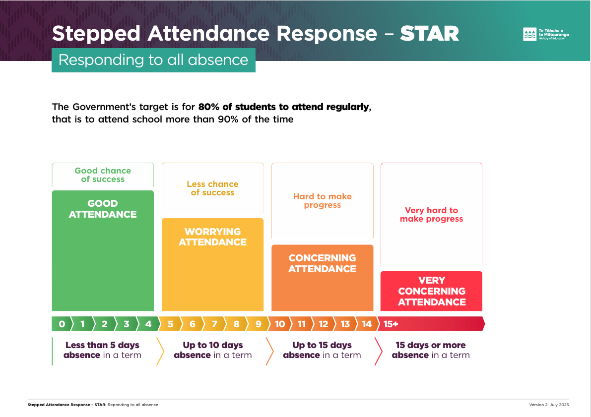 Regular school attendance is essential for student success. In New Zealand, the percentage of students attending regularly is low compared to many other countries. Lifting attendance is a shared responsibility. School leaders, boards and parents all play vital roles in supporting students to be at school and learning.